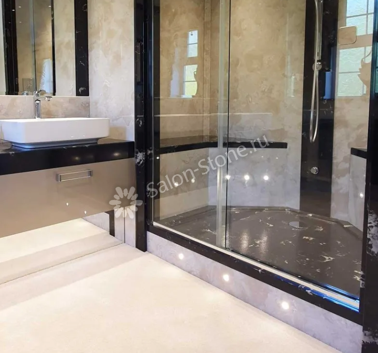 - Благодаря возможности заказа душевых поддонов из искусственного камня по индивидуальным размерам и предпочтениям, каждый может подобрать идеальный вариант, который идеально впишется в интерьер ванной комнаты. Разнообразие форм (от квадратных до нестандартных) и цветов (от классического белого до имитации натурального материала) позволяет создать уникальный дизайн.